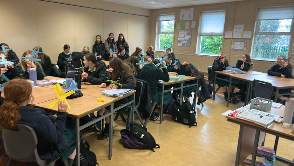 JPII students visited 2nd Year classes to teach them how to make St Brigid crosses