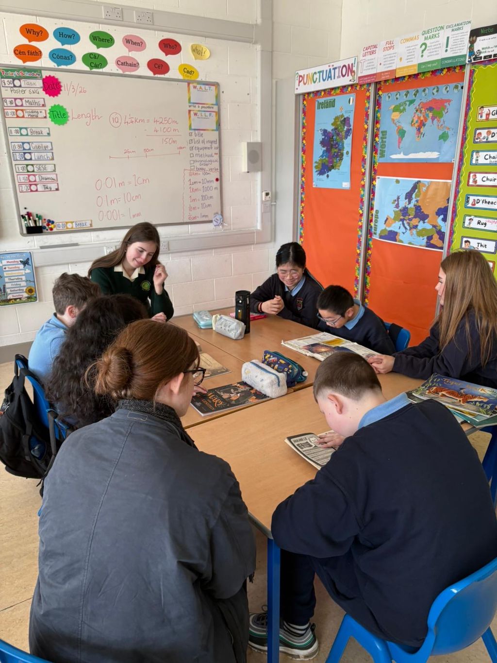 Well done to our 6th Year Religion students who completed their Faith in Action Project, working with 4th Class students in Bunscoil Rís to complete class murals. They also participated in paired reading to mark World Book Day. Well done to Ms. Woods and all involved.